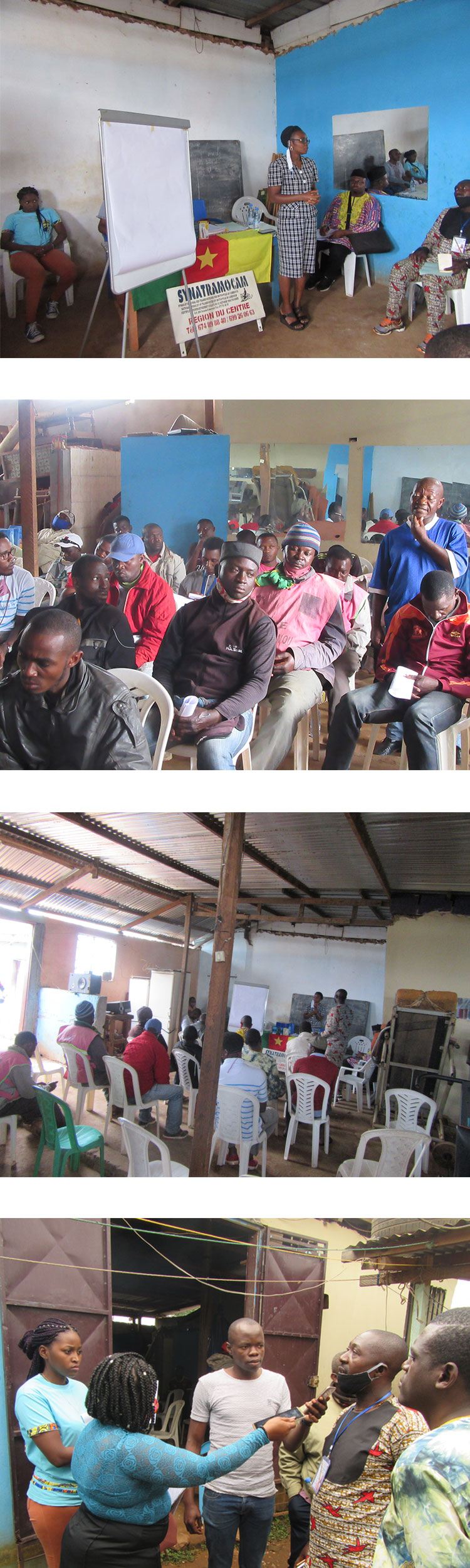 Causerie éducative avec les membres du SYNATRAMOCAM (Syndicat National des Transporteurs par Motocycle du Cameroun) et autres associations de motos le 26 août 2020.